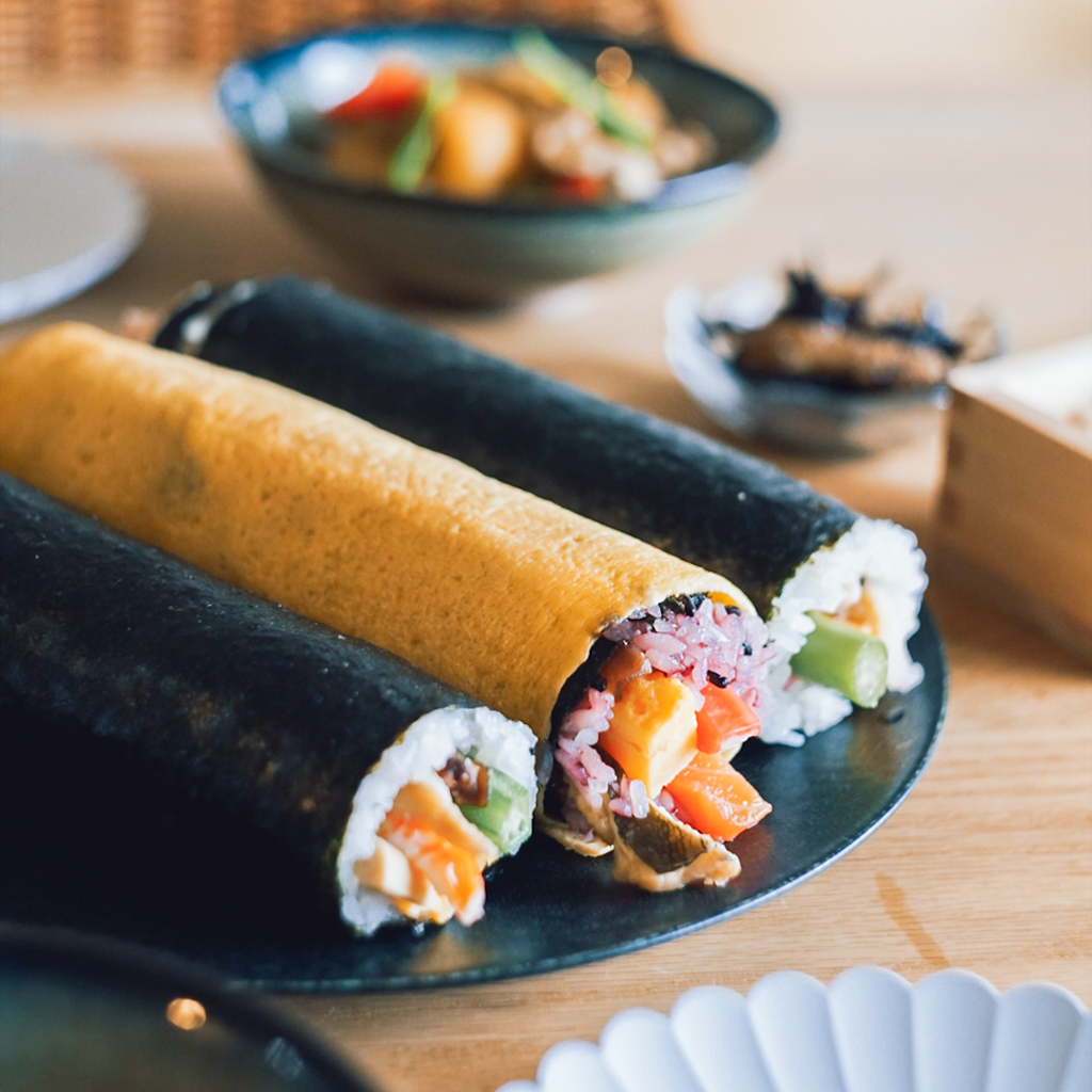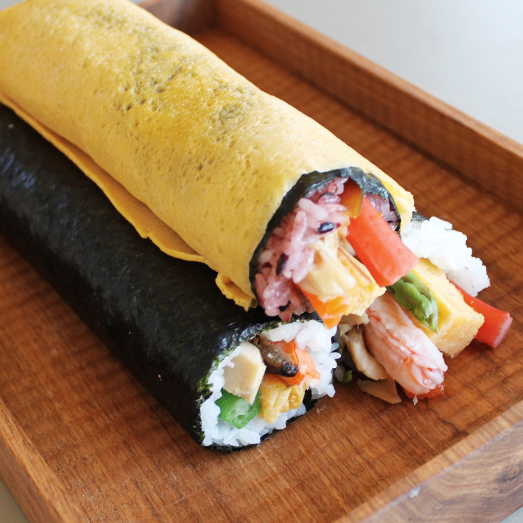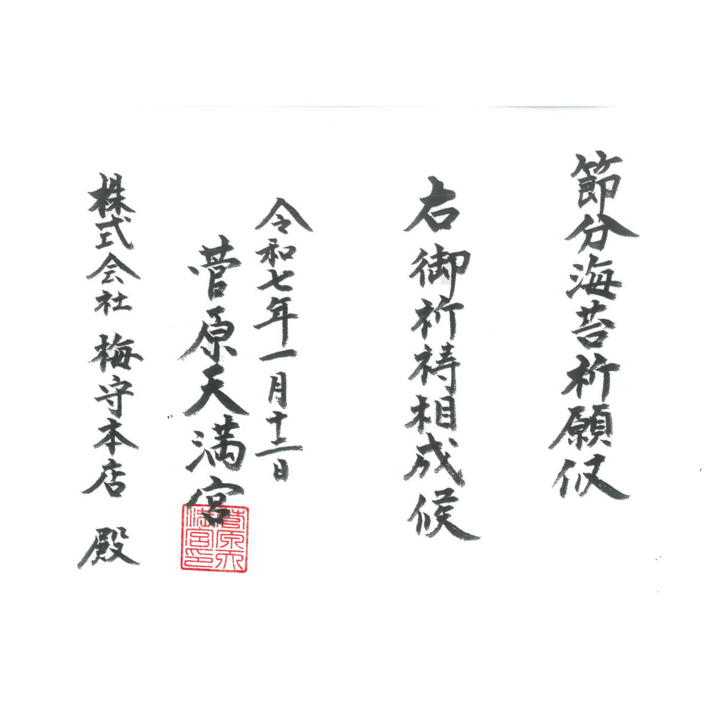 菅原道真公生誕の地「菅原天満宮」で厄除け開運祈祷済みの縁起の良い海苔を使用した縁起の良い恵方巻です。高野豆腐、干瓢、しいたけなど昔ながらの食材に、海老や穴子など少し贅沢に仕上げた『開運特上巻』もちもちとした食感の紫色の古代米を錦糸卵で巻き上げ、海老やサーモン、奈良漬けを使用したうめもりオリジナルの『古代巻』ふわふわの玉子に海老やサーモン、穴子など、贅沢な食材をふんだんに使用した『開運海鮮巻』のはるよび恵方巻の3本セットをご用意しました。是非お家で楽しめる春を呼び込むお品としてお召し上がりください。