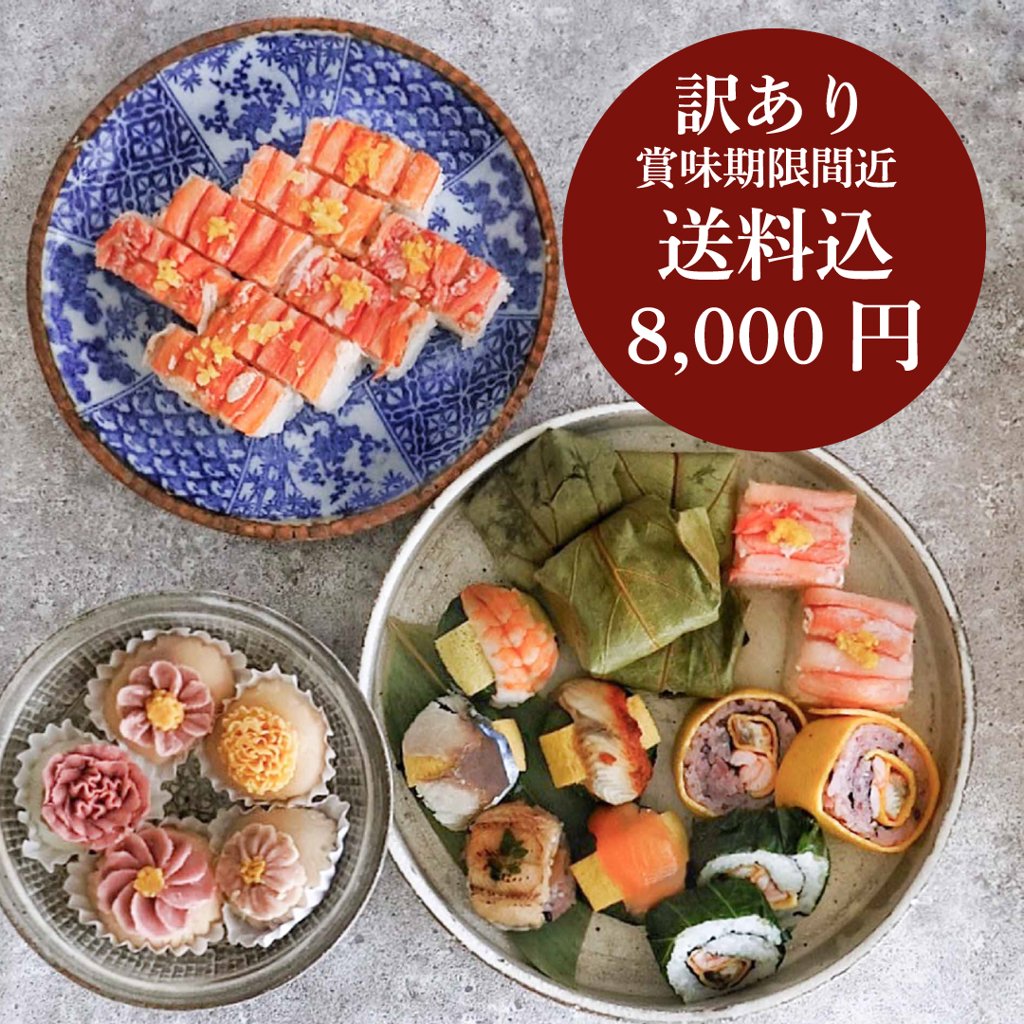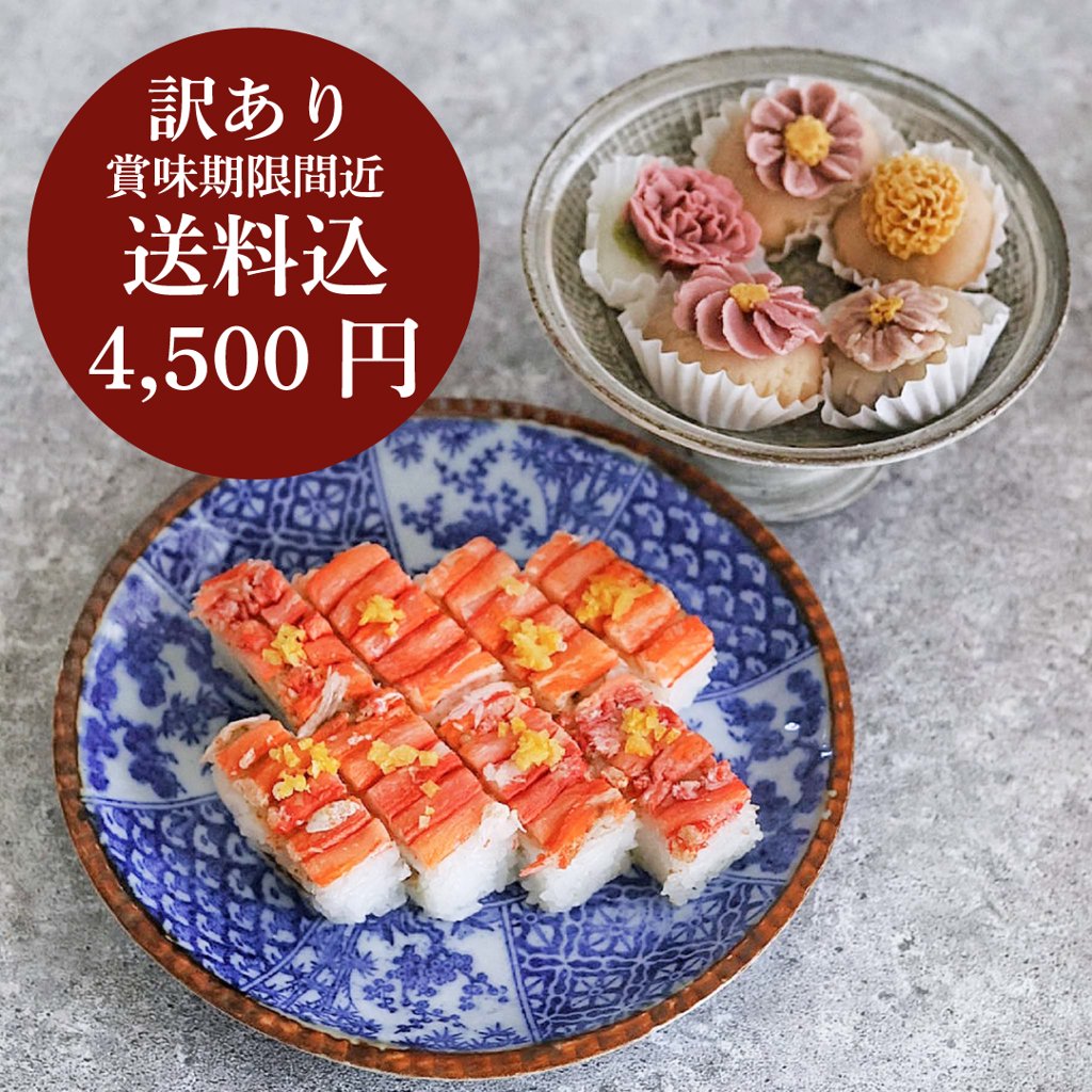 ※柚子香る紅ずわいがにの押し寿司/お花のおはぎ5個:賞味期限間近の商品で す。