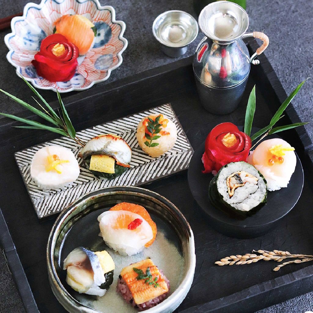 2018年に、47都道府県の中で一番のギフトとして「日本ギフト大賞ふるさとギフト最高賞」を受賞した「手鞠わさび葉寿し」は古くから奈良の山里で保存食に適したわさびの葉をご飯に包んで食べる習慣を、現代に蘇らせしゃりにわさびの葉を包み、鮭や鯖などのネタをのせたうめもりオリジナルの「わさび葉寿し」をひとくちサイズの可愛らしい手鞠寿しにしました。